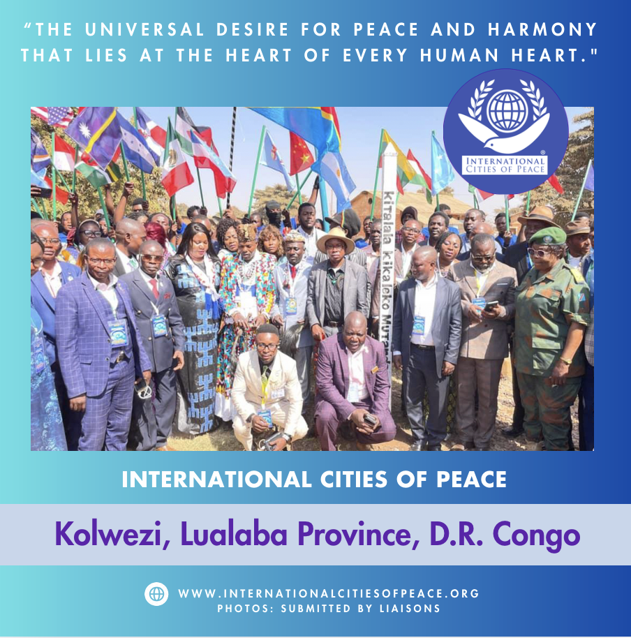 The Democratic Republic of Congo is a country with vast resources that has experienced over 5.4 million deaths the last two decades due to violence. John Mukhuta Muhiana, Liaison between Kolwezi, D.R. Congo and International Cities of Peace, is the Founder of the World Peace Foundation, DRC, Africa. He has established Lubumbashi and Kolwezi as Cities of Peace and John created the World Flag Ceremony for Peace. “With united hearts and minds,” writes John, “participants in the ceremony are invited to invoke prayers for Peace to prevail in the countries and regions of the world. It is a moving ceremonial ritual that transcends national boundaries, religions and ideologies and expresses the universal desire for peace and harmony that lies at the heart of every human heart.” We need to lift up such courageous peacemakers in countries under siege. International Cities of Peace helps.