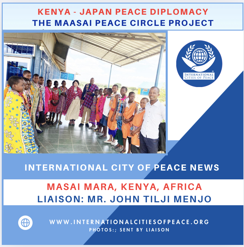 Kenyan John Tilji Menjo of the Maasai ethnic group, a former Board Member of International Cities of Peace, is on a peace mission to Japan. Hosted by the people of Saitama Prefecture, John has created the Peace Circle Project, where Japanese Children can learn about Kenyan culture and vice versa. “In Kenya,” John writes an update to International Cities of Peace, “most of the children have been directly affected by conflict and crisis. I have been taking them out under the trees’ classroom and engaging them in education, art, play and cultural activities. It became the first peace school in Kenya, as is now called Classroom Without Walls.” Recently, John’s Mandala Project sent 300 mandalas to “bring echoes of peace to the world.” We congratulate John and the peacemakers in Japan.